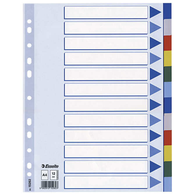 Pregrada kartonska A4 brojevi 1-12 kolor 12listova Esselte 100162