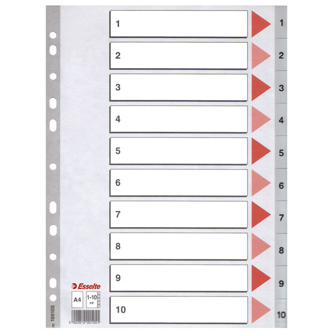 Pregrada plastična A4 brojevi 1-10 Esselte 100105 siva