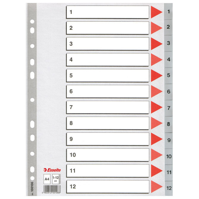 Pregrada plastična A4 brojevi 1-12 Esselte 100106 siva