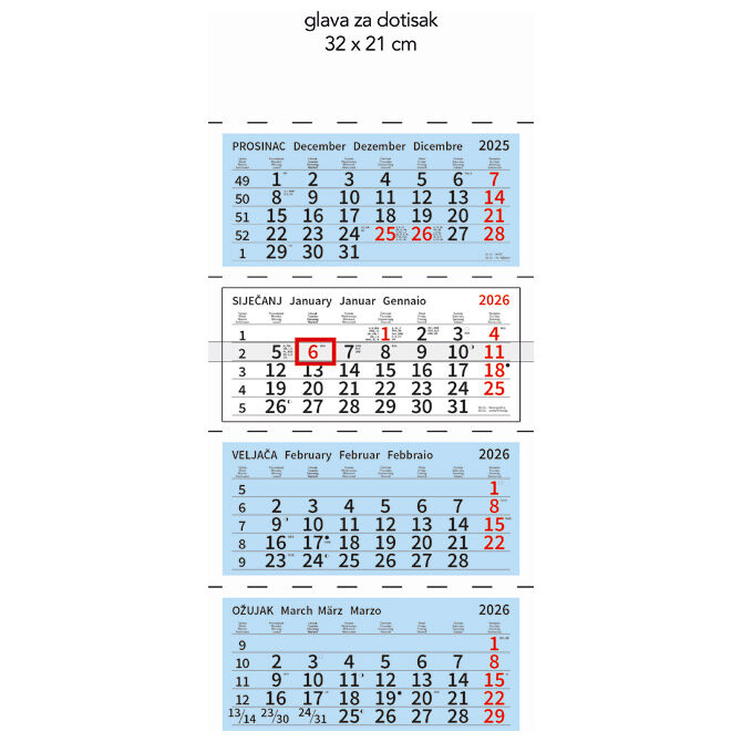 Kalendar zidni trodijelni 2026.-3 bloka, preklopni!!