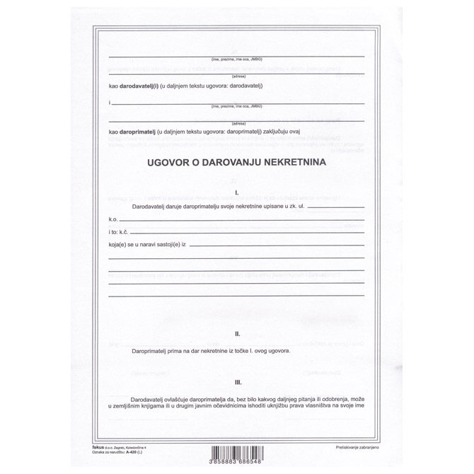 Obrazac A-420 ugovor o darivanju nekretnina Fokus!!