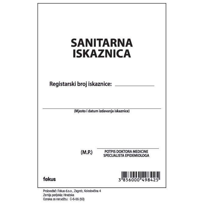 Obrazac C-6-55 sanitarna knjižica Fokus