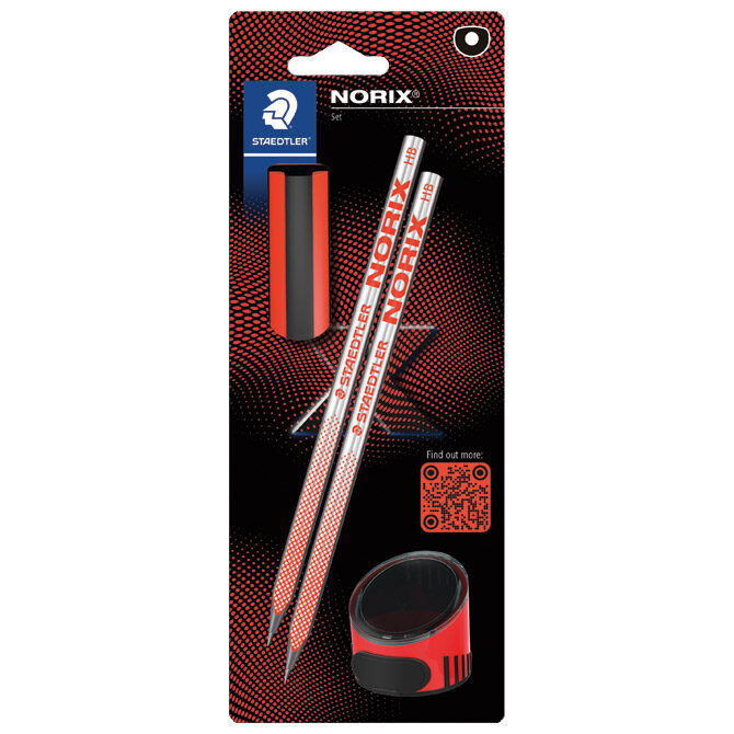 Olovka grafitna HB Norix pk2+gumica+šiljilo Staedtler 181 SBK2-2 crvena blister