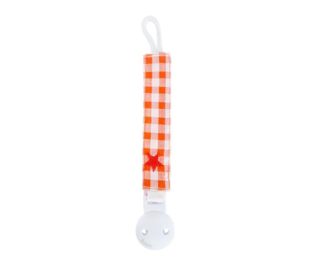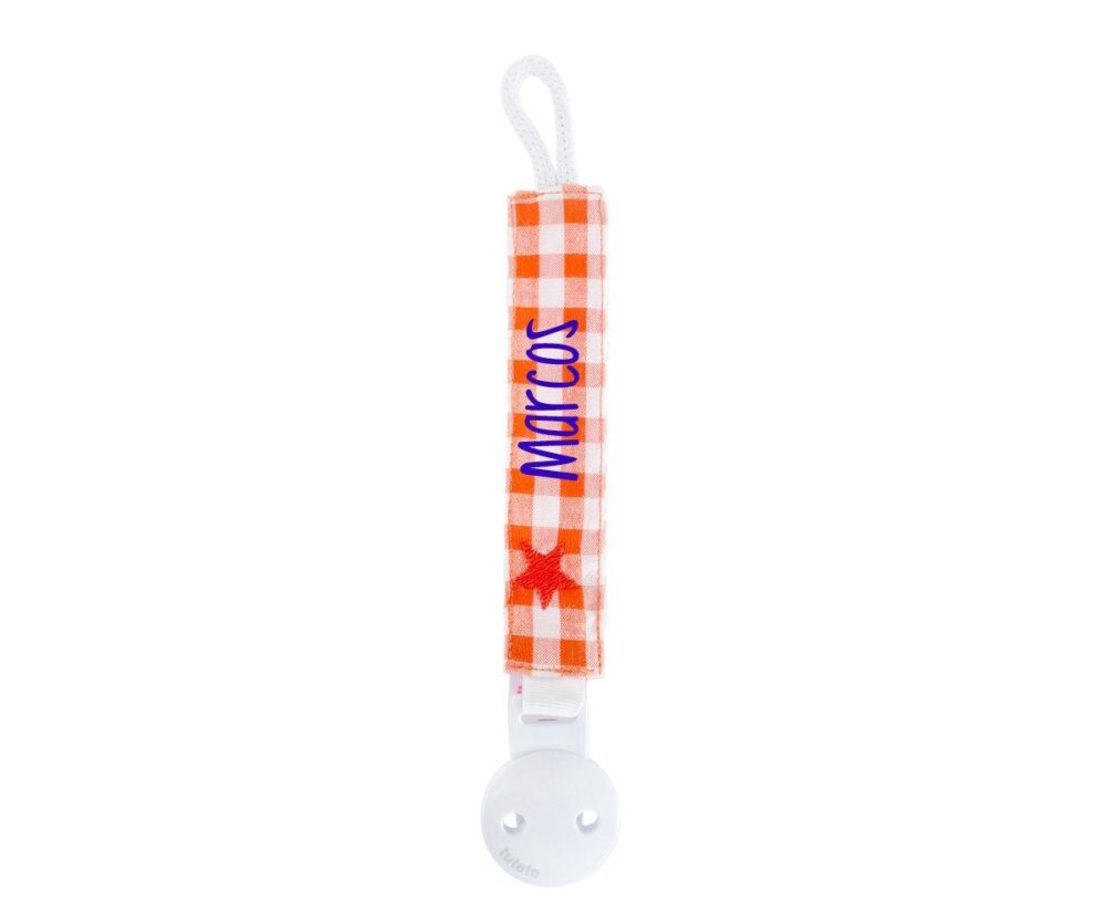 SUJETA CHUPETES, LOLA, BORDADO ESTRELLA naranja