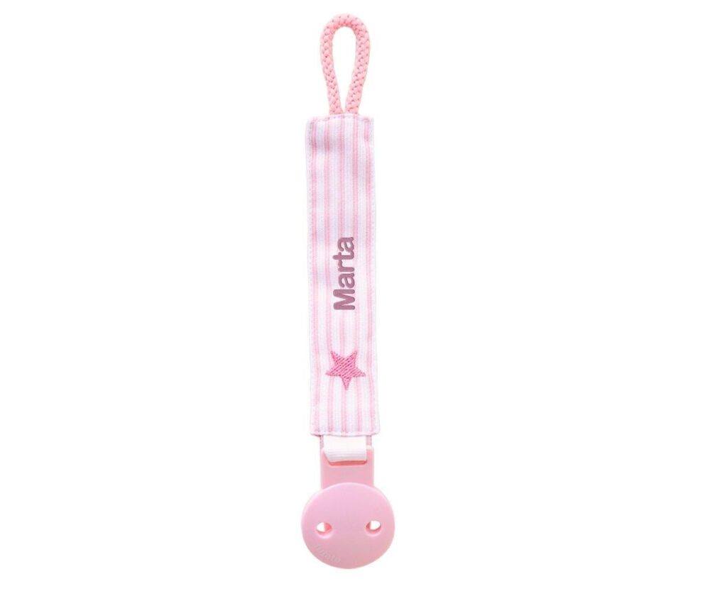 SUJETA CHUPETES, LOLA, BORDADO ESTRELLA rosa