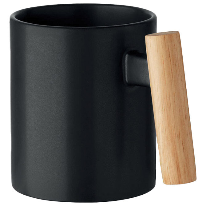 Šalica keramička 320ml Crenate sa drvenom drškom crna