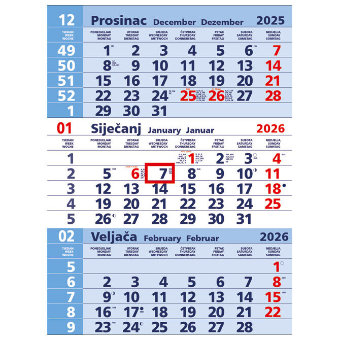 Kalendar zidni trodijelni 2026.-3 bloka, preklopni!!