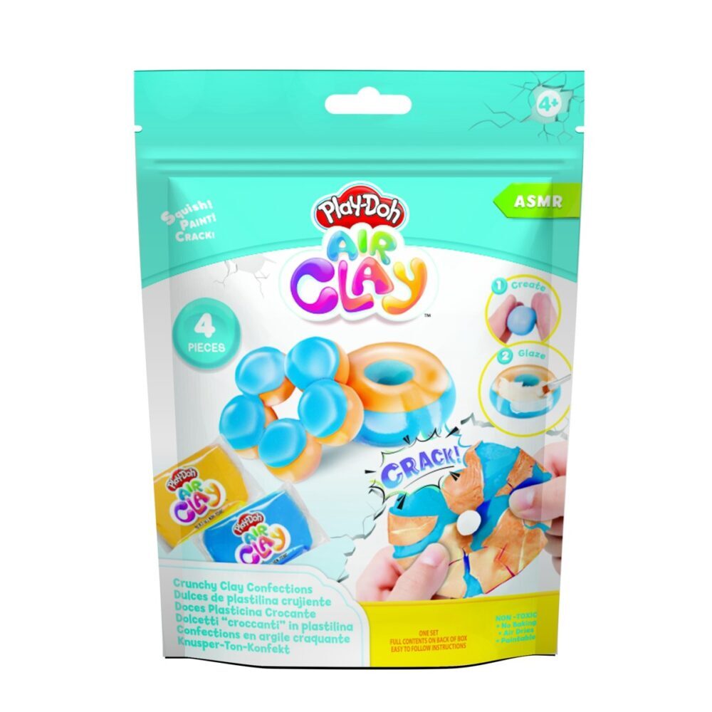 Djeca širom svijeta obožavaju Air Clay liniju od Play-Doh-a, a ovaj poseban set pruža im priliku da stvore svoje šarene slastice s posebnim iznenađenjem! Zahvaljujući posebnom dizajnu Play-Doh Air Clay-a, ove kreacije ne samo da izgledaju primamljivo, već i imaju hrskavu teksturu koja će razveseliti svako dijete.
