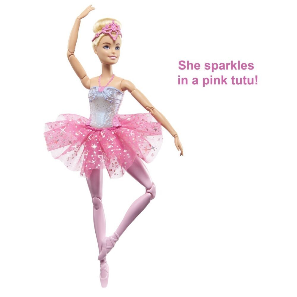 Gledaj kako tvoja omiljena Barbie® lutka svijetli dok pleše svoj omiljeni ples u rozim baletnim papučicama! Ove prekrasne balerine u sebi imaju čarobno osvjetljenje s kojim tvoja balerina jednostavno blista na podiju!