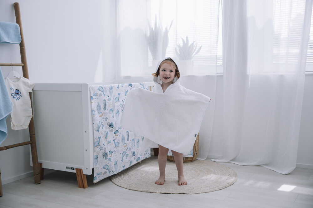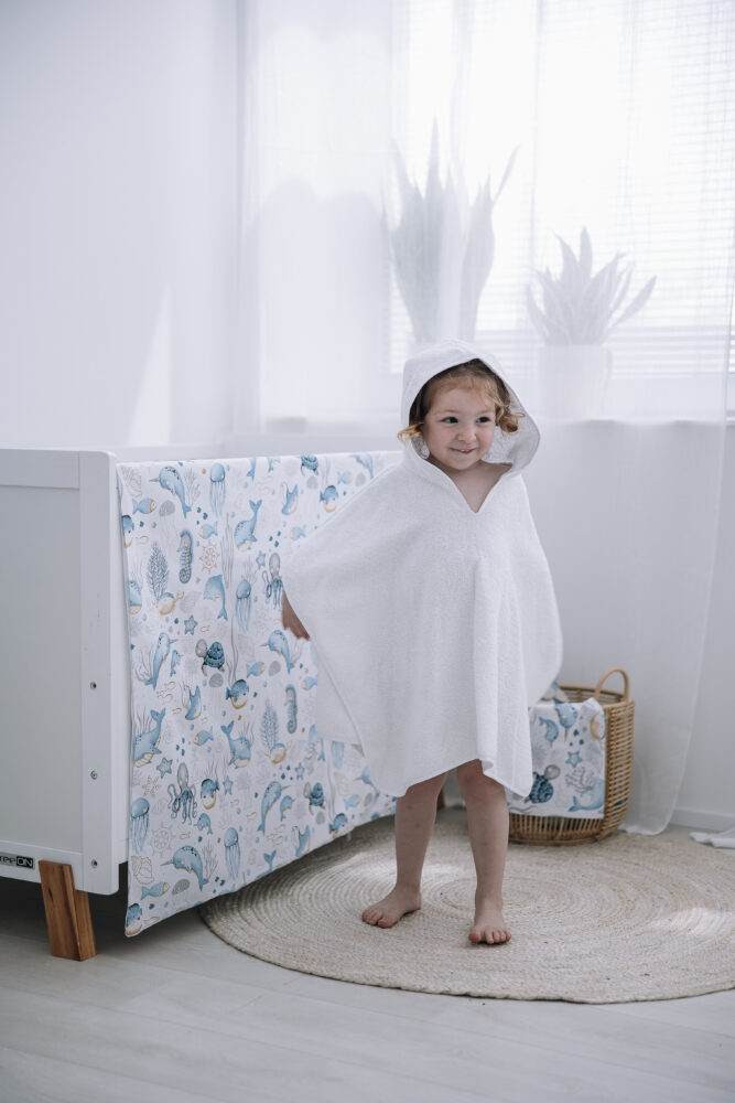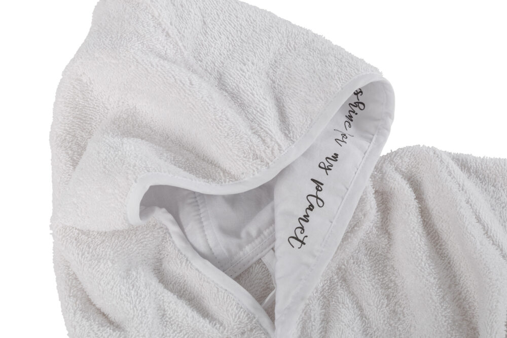 BUBABA BY FREEON ogrtač za kupanje s natpisom na kapuljači 104/110/116 bijela