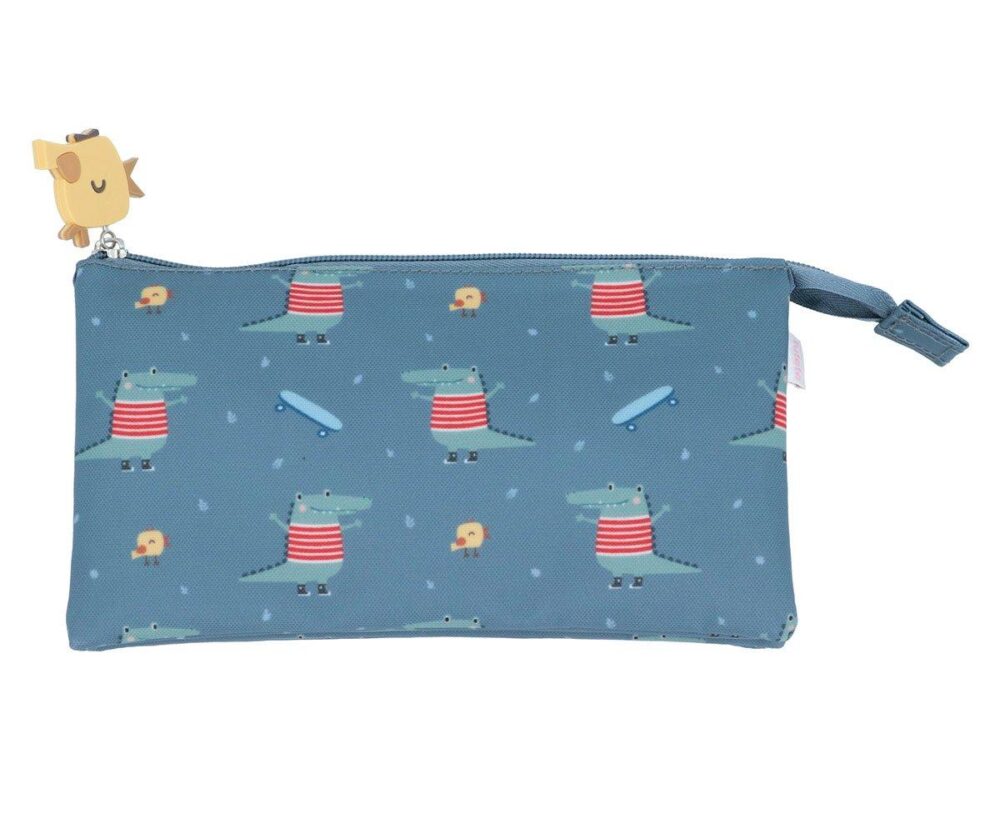 To keep all school supplies well organized, Tutete presents the pencil case with 3 compartments from the Back to School Croc collection.It has a main zipper whose interior separates into 3 distinct areas, one of which also closes with a zipper. Its bird-shaped puller is ideal for opening and closing it very easily.Additionally, you can personalize it with your little one’s name embroidered. Discover the Tutete Croc collection by clicking HERE FeaturesThe arrangement of the designs may vary and the embroidery may align, possibly leaving the personalization over one of them100% RPET (recycled plastic)Silicone pullerSilicone pullerMeasurements: length 22.5cm x height 12cmOuter zipper closure with decorative pullerCentral compartment zipper closure (without decorative puller)Machine washable in cold (30°C) ATTENTION: When choosing the personalization option, remnants of 100% RPET material (recycled plastic) may remain on the embroidery. Scratching a little with the help of a clothing brush will release these remnants