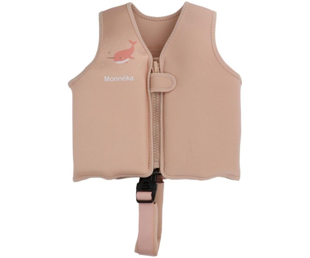 The vest from the Narval Peach Collection by Monnëka by Tutete features a safety strap to place between the legs to ensure the vest does not slip over the head, in case of a vertical dive into the water or when simply floating in the water.This strap is protected with neoprene to prevent chafing between the legs. This vest has 8 compartments, each containing 3 flotation elements. A total of 24. These elements can be gradually removed so that the child improves their ability to float without assistance. Other vests only have 8 pieces, so the level of buoyancy changes more abruptly when removing the pieces one by one. SizesSmall: From 1 to 3 years, weight 9 to 19 kg, chest circumference 51-56cmMedium: From 3 to 6 years, weight 18 to 30 kg, chest circumference 56-61cmWARNING: At Tutete, we recommend choosing the correct size by the child’s chest circumference.