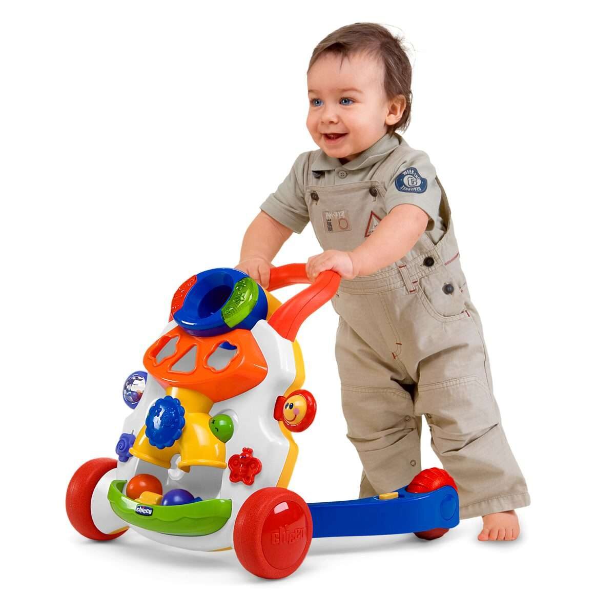 Mališan može prvo sjesti pored hodalice. Ploča za igranje na prednjoj strani hodalice omogućuje razne aktivnosti i vrlo raznoliku igru.