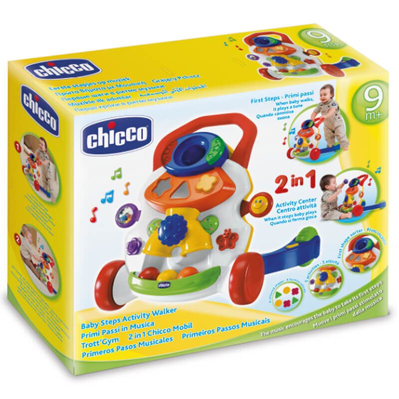 Kasnije hodalica pomaže djetetu da poduzme prve sigurne korake. Kad dijete uhvati ručku i napravi korak,na hodalici počnu svirati melodije. Kad prestane hodati, glazba prestaje. Na taj način hodalica pomaže i potiče dijete na nove korake.