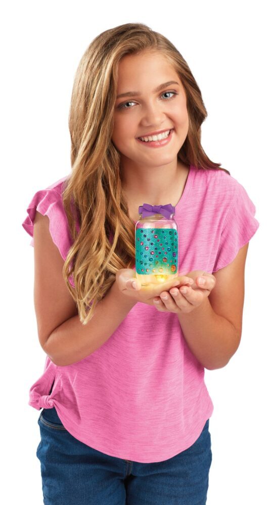 Stvorite svjetlucave kreacije sa Shimmer ‘n Sparkle Mosaic Gem Creations.Uključuje: Uključuje 3 staklenke, 3 lista dragulja, 5 naljepnica za mozaik, LED svjetleću kuglu, vrpcu i upute.Ukrasite ih draguljima i dodajte čaroliju pomoću LED svjetla.Dob 8+ god.
