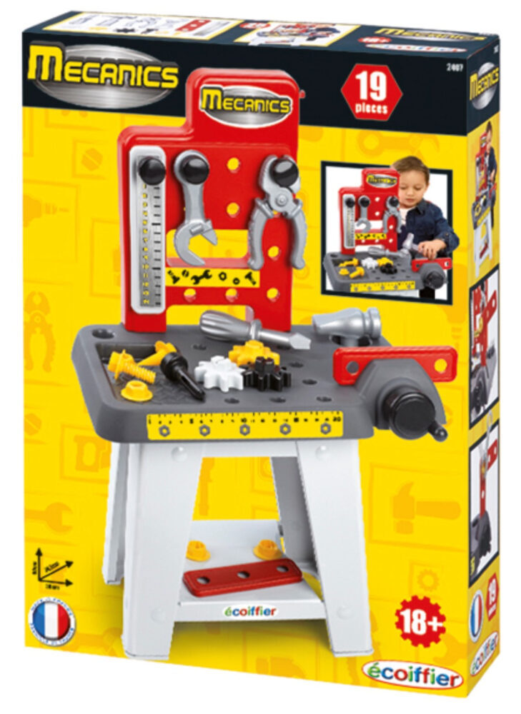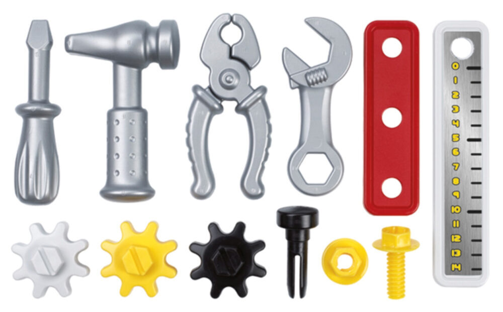 Djeca će rado oponašati roditelje pomoću umanjene verzije alata jer izgleda baš poput pravog alata. Stol dolazi s 19 dodataka: vijci, odvijači, čekić, kliješta, …