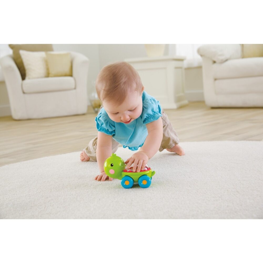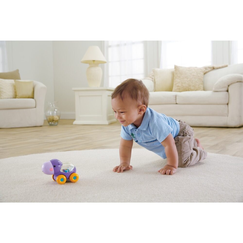 Uzbudljiva radnja i zvukovi potiču bebu da se uvijek iznova gura i puzi, razvijajući tjelesnu kontrolu.