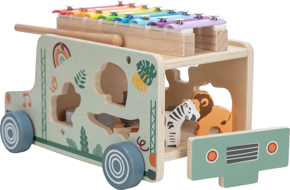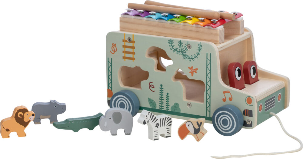 Kamion je prvo vozilo svakog mališana, a ako je tu i ksilofon, igra je još zabavnija. U kamion su dodane životinje i špaga kako bi ga dijete moglo vući za sobom. Igračka je primjerena za djecu od 18 mjeseci starosti. Dimenzije 16×24,7×16 cm.