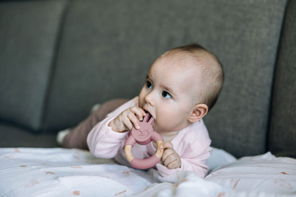 Grizalo dizajnirano na način da simpatičan oblik zečića privlači bebinu pozornost. Grizalo je izrađeno od visokovalitetnog silikona koji ne sadrži BPA, olovo, ftalate, te visokokvalitetnog drva. Primjerena za korištenje od rođenja nadalje. Veličina grizala 7×10,5×1,7 cm, a oblik je savršen za hvatanje malim ručicama. Olakšava razdoblje nicanja zubića.
