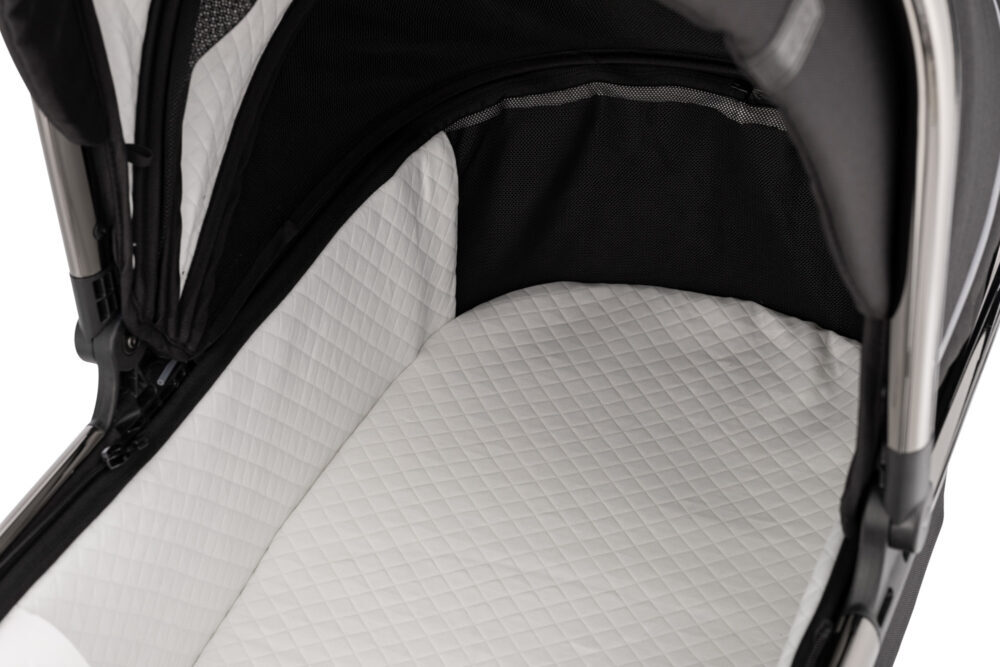 Udobna košara za novorođenče za najbolji početak. Primjerena za korištenje od rođenja do 6 mjeseci starosti. Prostrana, s produženim krovićem, s dodatnim mrežastim područjem za bolju prozračnost, mekanom i udobnom podstavom i jednostavnom montažom na konstrukciju kolica.