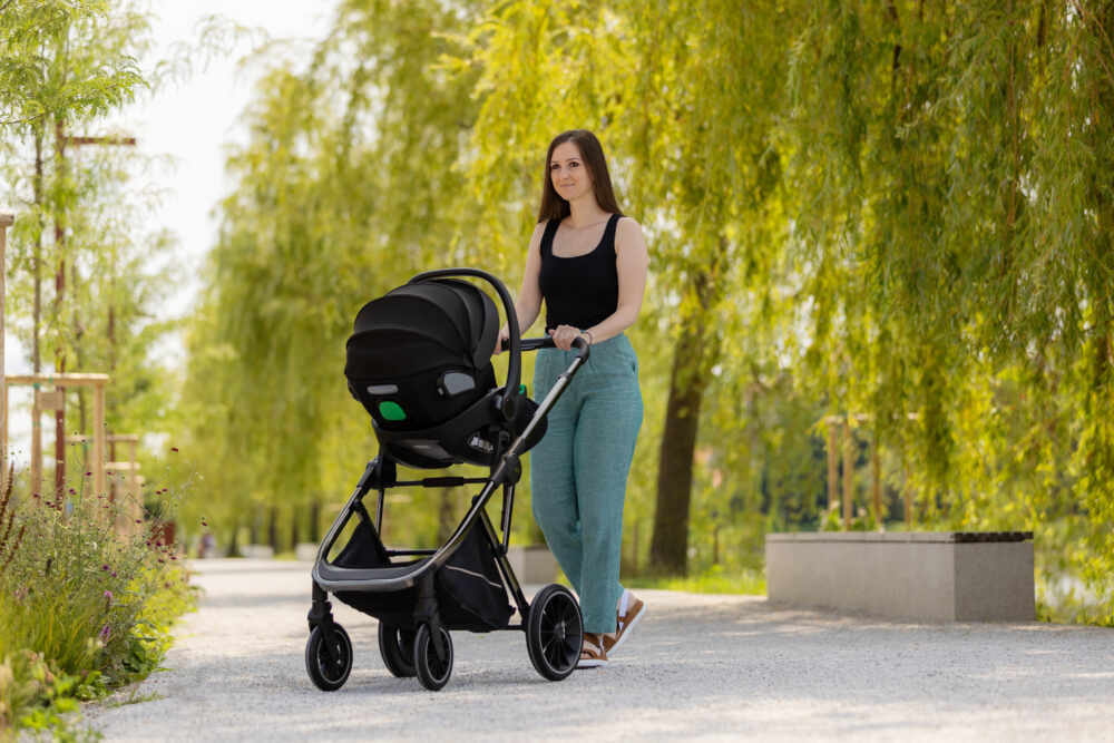 Prva dječja autosjedalica za sigurna putovanja u automobilu. Primjerena za bebe od rođenja nadalje, tj od visine 40 do 87 cm, testirana prema najnovijem standardu ECE R129. Ima podesiv naslon za leđa, potpuno ležeći položaj (koristi se kada sjedalice nije ugrađena u automobil), sigurnosne pojaseve u 3 točke, podesiv krović, unutrašnjost od memorijske pjene. Pričvršćuje se na konstrukciju kolica uz pomoć priloženih adaptera. U automobilu se montira i pričvršćuje uz pomoć sigurnosnih pojaseva automobila.