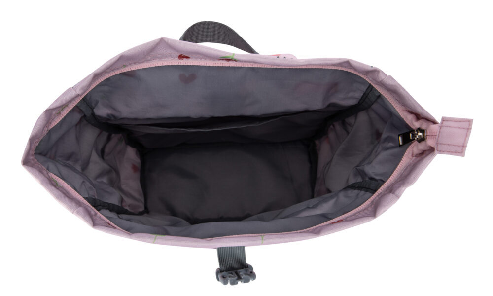 Dječji ruksak sa simpatičnim motivom. Ruksak ima dva pretinca s patentnim zatvaračem, jedan veći i jedan manji sprijeda. Ima podesive mekane podstavljene naramenice i udobna mekana podstavljena leđa. Ruksak ima kopču koja sprječava da naramenice skliznu s djetetovih ramena. Izrađena je od izdržljivog i visokokvalitetnog materijala. Dimenzije 24x15x26 cm.