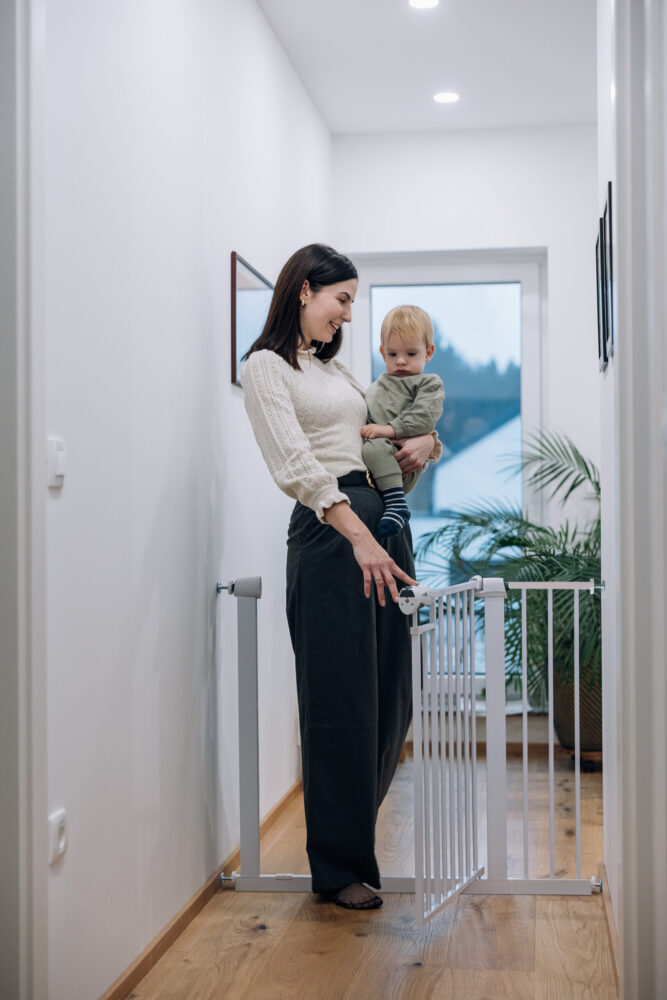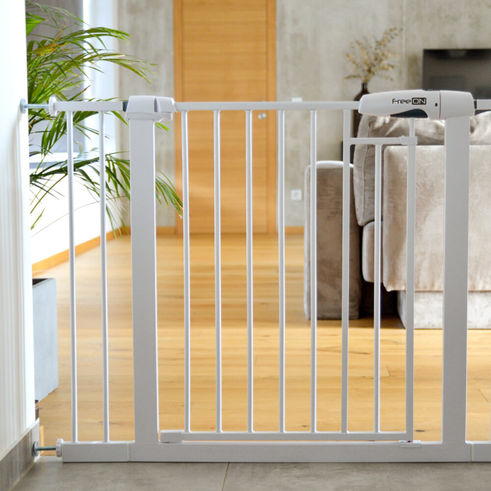 Zaštitna ograda Gama omogućuje automatsko zatvaranje magnetom i montažu bez vijaka, s protukliznim džepovima sa silikonskim premazom. Otvaranje u oba smjera ili mogućnost otvaranja u jednom smjeru.