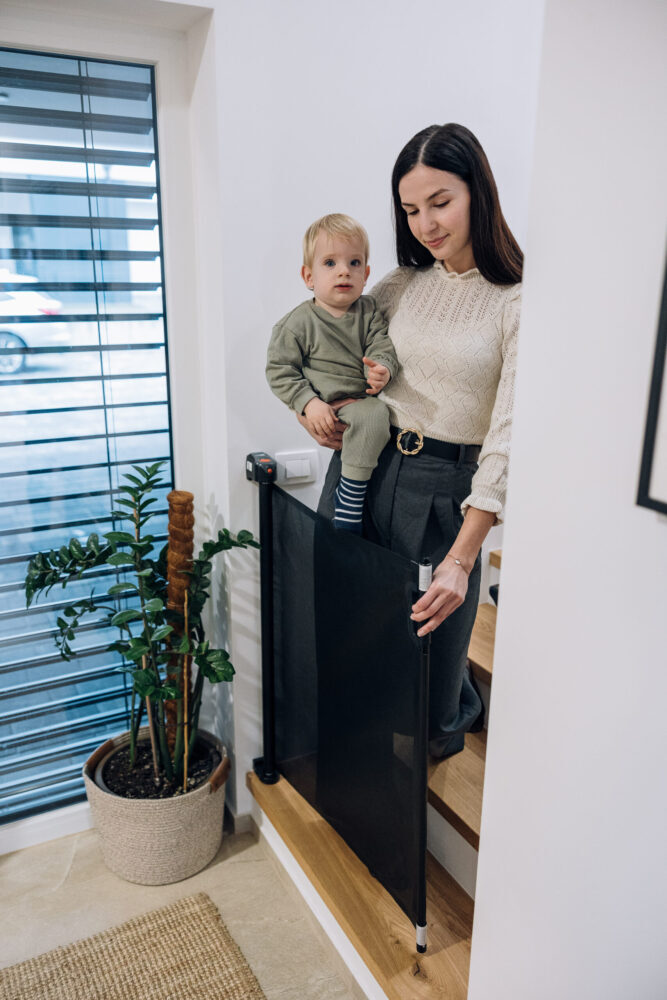 Sklopiva zaštitna ograda Sigma dizajnirana je na način da vam je potrebna samo jedna ruka za rukovanje ogradom, tako da je možete bez problema otvarati i zatvarati čak i dok držite dijete u naručju.