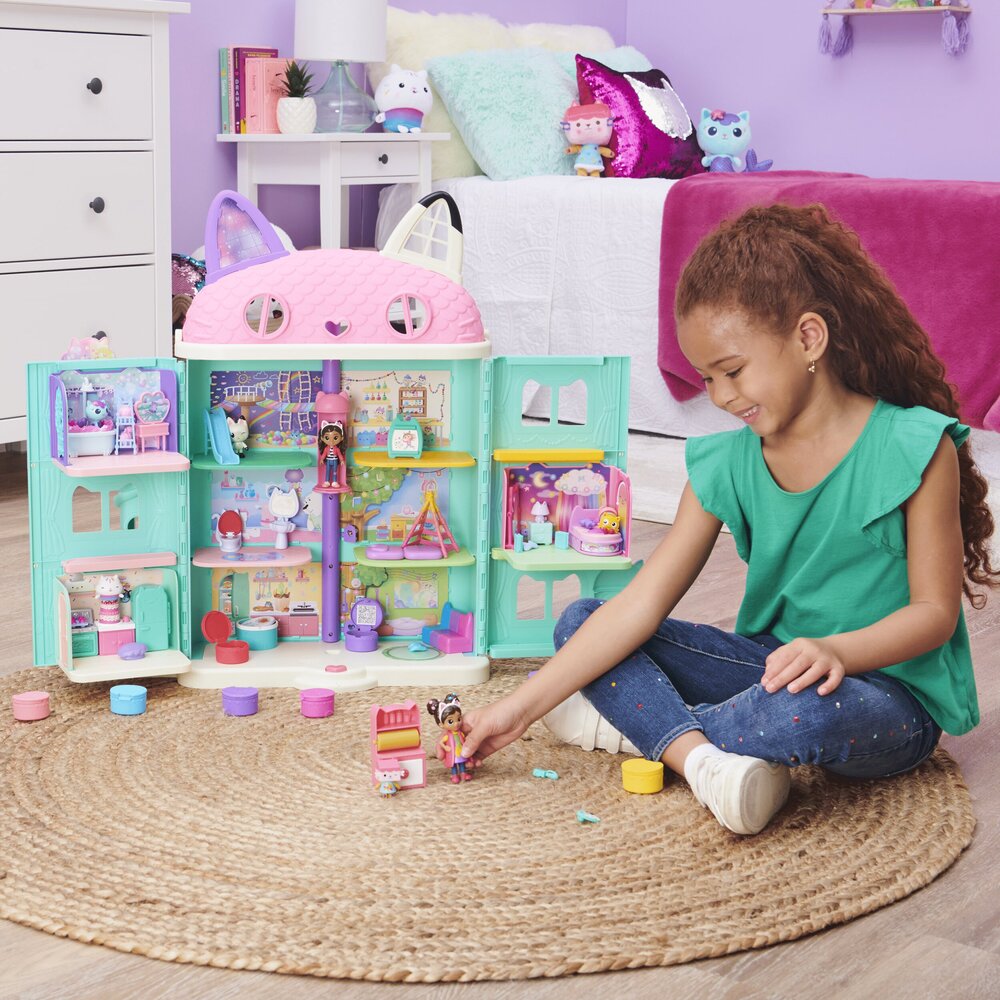 Gabby’s Dollhouse kolekcija igračaka inspirirana je popularnom Netflixovom animiranom serijom i sadrži mnoštvo slatkih i šarenih plišanih igračaka, lutki i setova za igru koji će vašu djecu odvesti na fantastično putovanje. U Gabbynoj kućici sve igračke su žive i spremne za zabavu! Upoznajte Gabby, njezine čarobne mačke i ostale likove iz serije dok se vaša djeca igraju s njihovim najdražim prijateljima iz televizijske emisije. Znamo da je Gabby umjetnica u duši pa se tako vaše dijete može maštovito igrati sa setom za igru koji sadrži figurice Gabby i njene mace te dodatke za igru uz pomoć kojih Gabby može stvarati prava mala umjetnička djela! Set je primjerene veličine te je pogodan kako za igru kod kuće tako i za putovanja. Dob: 3+