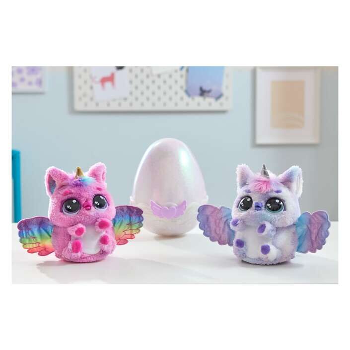 Svako veliko jaje Mystery Hatch Hatchimals sadrži jednog od dva različita ljubimca, svaki sa svojim jedinstvenim izgledom, zvukovima i svjetlima. Uključuje 4 AA baterije. Mazite i njegujte svoj Hatchimal kako biste ga oživjeli.