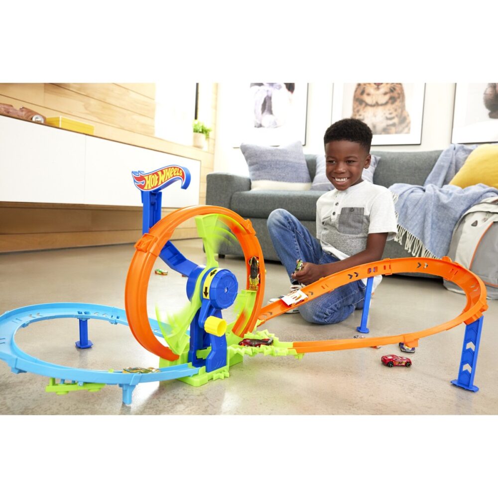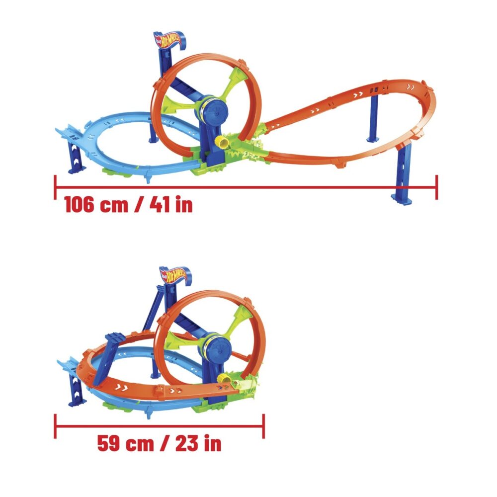 Doživite neprekidnu akciju uz ovaj inovativni Hot Wheels set za igru s turbinom! Pokrenite moćni mehanizam turbine koji automatski lansira vaš Hot Wheels autić kroz petlju, oštre zavoje i opasnu zonu sudara, vraćajući ga na početak za beskonačnu jurnjavu. Set uključuje jedan autić u mjerilu 1:64, a za maksimalno uzbuđenje možete dodati još automobila i izazvati neizbježne sudare. Kada igra završi, set se jednostavno sklapa i pomoću praktične ručke omogućuje lagan transport i urednu pohranu.