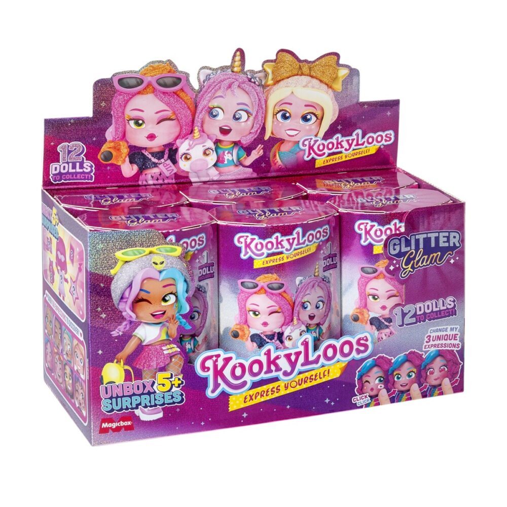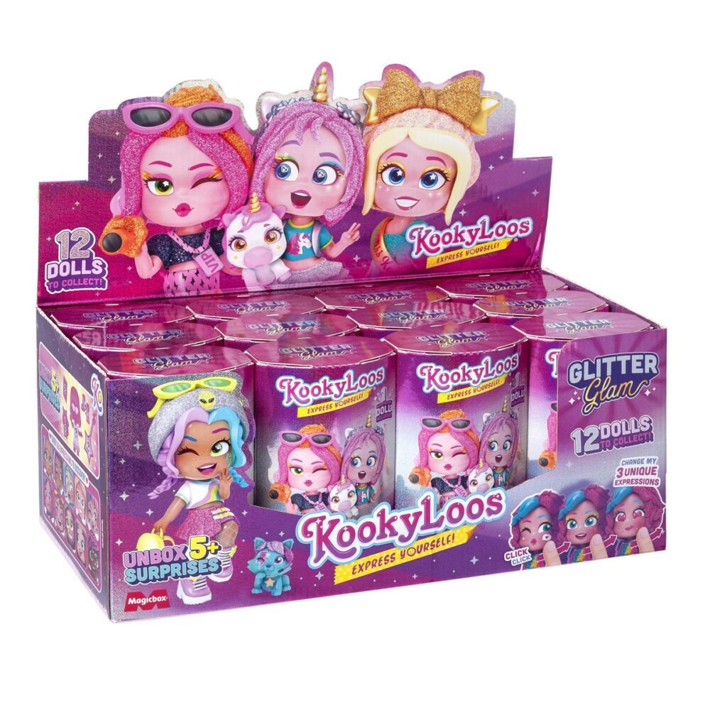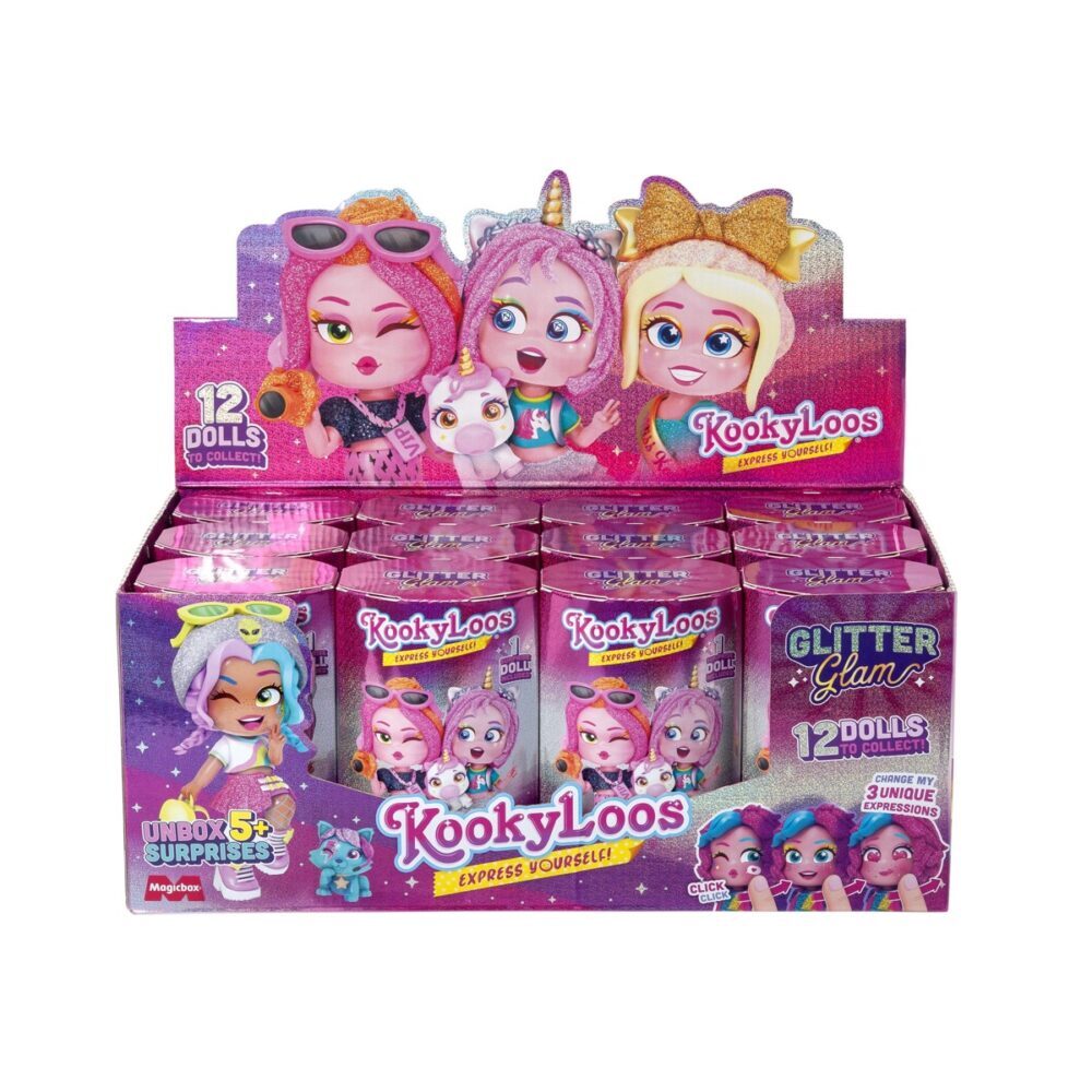 Kooky Loos – lutkice sa stilom! One su mini, one su slatke, one su zabavne i mogu promijeniti izraz lica samo jednim potezom! Svaka je drugačija-12 novih Kookyloos-ica stiglo je u novoj seriji GLITTER GLAM – Glitter dive ili Glitter štreberice, ili možda Glitter gala lutkice ili čak Glitter fnatazija? Imaju puno svjetlucavih detalja, kao i nove dodatke i kućne ljubimce. Koju ćeš ti dobiti? Dob: 3+