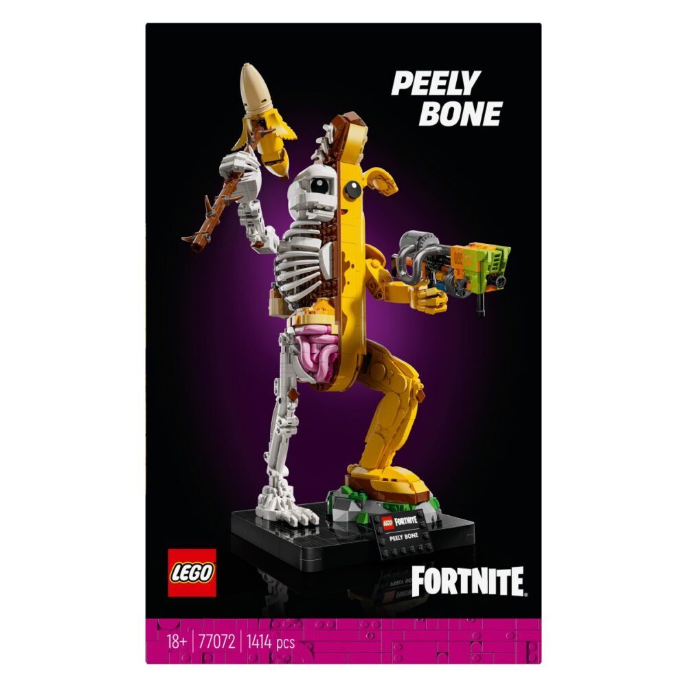 Oživite kultnu figuru iz videoigre u odličnom kompletu za slaganje LEGO® Fortnite® Peely Bone (77072) za odrasle. Pun je zabavnih detalja koji će oduševiti obožavatelje, a nastao je po uzoru na videoigru Fortnite, pa igrači mogu složiti dojmljiv model banane iz igre i izložiti ga. Obožavatelji Fortnitea uživjet će se u pustolovinu izvan zaslona dok slažu Peely Bonea od kocaka, koji je pola banana, a pola kostur. Obradovat će se kad slože pomične ruke i zapešća igračke, ali i zanimljive dodatke, kao što su Peely Pick Pickaxe, bacač boje i Banana Bag Back Bling. U kompletu dobivate i pločicu s imenom i postolje za izlaganje, pa će igrači uživati u složenom zabavnom modelu kada ga ponosno izlože. Figura banane promišljen je dar za igrače i obožavatelje Fortnitea, a kad je izlože, postaje neiscrpan izvor veselja koji podsjeća na LEGO videoigru.