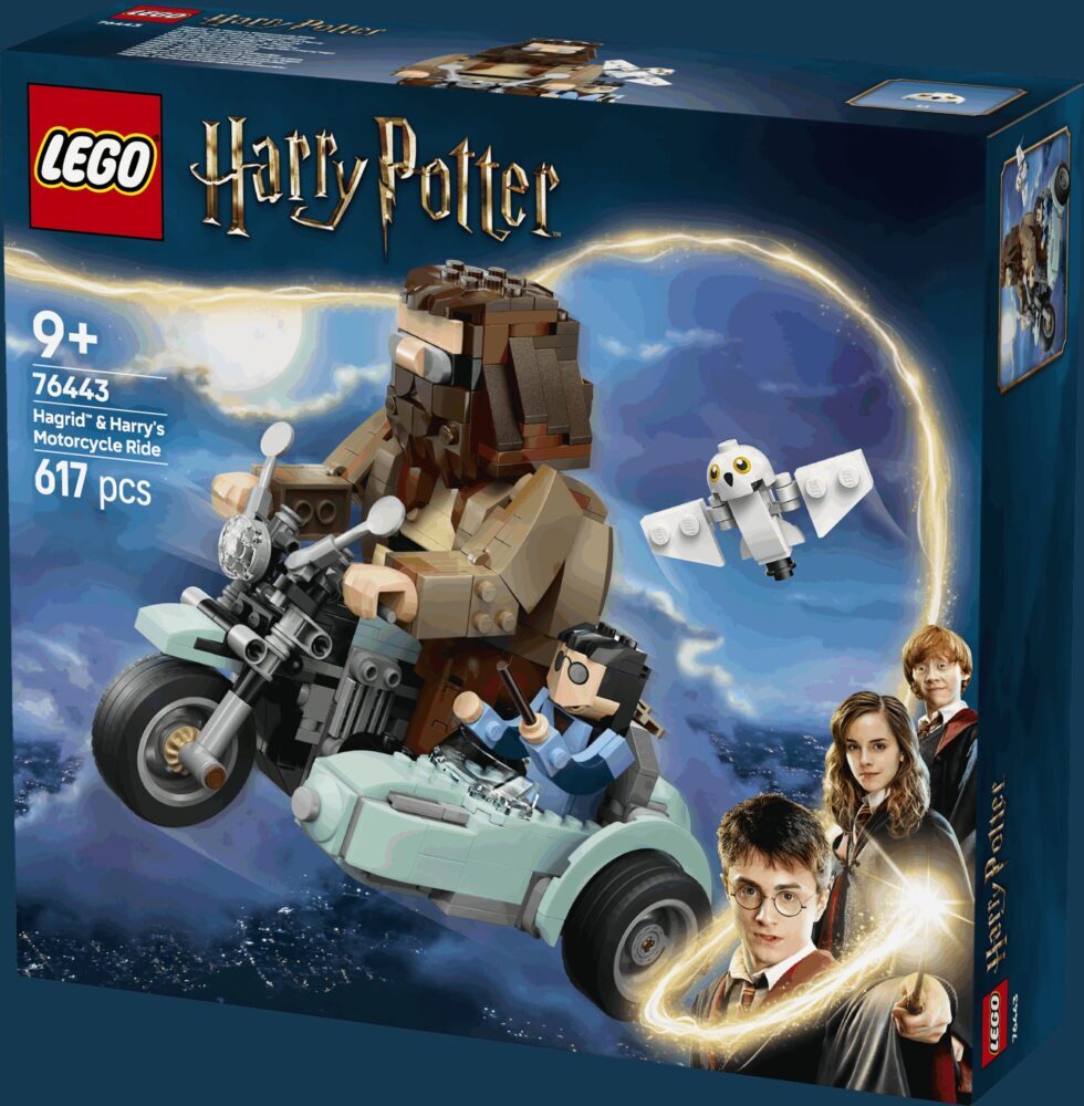 Čvrsto se držite dok se vozite u čarobnom kompletu Hagrid™ i Harry na motociklu (76443) za djevojčice, dječake i sve ljubitelje čarobnjačkog svijeta. Komplet LEGO® Harry Potter™ za igru i izlaganje može biti sjajan rođendanski poklon za djecu od 9 godina i stariju. Uključuje pomične figurice Harryja Pottera, Hedvige™ i Rubeusa Hagrida koje su spojene s motociklom i prikolicom. Kotači igračke od LEGO kocaka okreću se da djeca mogu odglumiti nezaboravne prizore iz filma Harry Potter i darovi smrti™ ili izložiti model kao dojmljiv ukras za sobu. Poklonite mališanima jednostavnu i intuitivnu pustolovinu slaganja uz aplikaciju LEGO Builder u kojoj mogu približavati i okretati trodimenzionalni model, pratiti napredak i iskoristiti druge funkcije. Komplet s čarobnjačkom igračkom za ljubitelje fantastičnih pustolovina dio je velike kolekcije LEGO kompleta o Harryju Potteru (prodaje se zasebno) koja će probuditi maštu mladih vještica, čarobnjaka i bezjaka™.