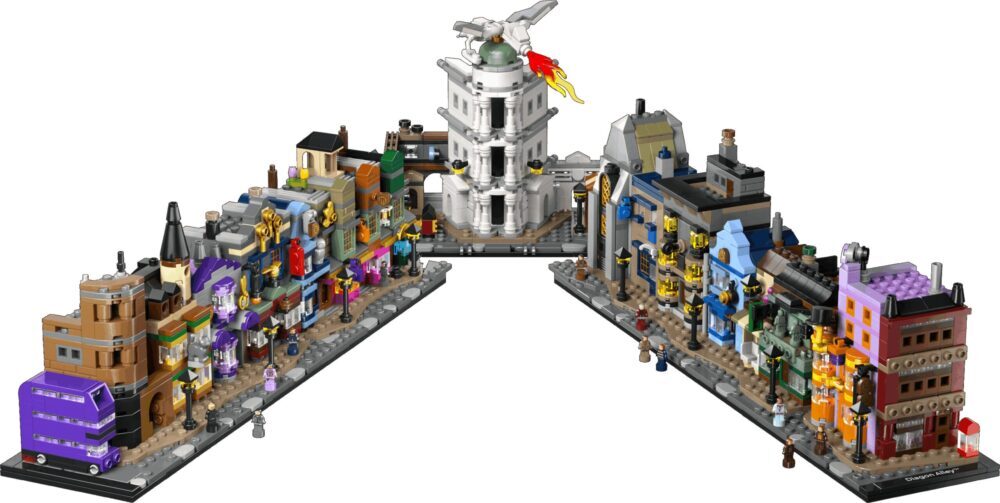 Krenite na čarobno kreativno putovanje u dojmljivom modelu Zakutne ulice™ u mikromjerilu. Složite eksterijer i interijer Weasleyjevih čarozeza™, čarobnjačke banke Gringotts™, Šupljeg kotlić i brojnih drugih mjesta. Rasklopite model i dobit ćete dugačak model ulice za izlaganje. Upotpunite čarobni ukras s 12 mikrofigura likova iz filmova o Harryju Potteru™ i Moćnim autobusom™.