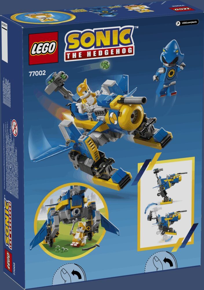 Zainteresirajte djecu i ljubitelje kolekcionarskih predmeta sa Sonicom od 8 godina i starije koji vole igračke iz videoigara kompletom za slaganje Cyclone i Metal Sonic u borbi (77002). U kompletu LEGO® Sonic the Hedgehog™ dobivaju robota s nogama i kupolom sa zglobovima i pucač. Djeca mogu pretvoriti robota u leteći stroj tako da mu preklopa noge prema gore i okrenu prema naprijed, a tu je i paket alata za održavanje ili popravke. Komplet za igru sa Sonicom zabavna je igračka za dječake, djevojčice i svu djecu koja vole biti u centru pozornosti. Dobivaju 2 figurice, Metal Sonica i Tailsa, pa mogu sudjelovati u raznim pričama, od priče o Tailsu koji priprema robota za borbu do suočavanja s Metal Sonicom za zaštitu smaragda kaosa u trupu robota. Možete proširiti zabavu jurnjave s drugim poklonima iz videoigara iz linije LEGO Sonic the Hedgehog (kompleti se prodaju zasebno). Djeca mogu doživjeti i intuitivnu pustolovinu slaganja u aplikaciji LEGO Builder u kojoj mogu približavati i okretati modele, spremati komplete i pratiti napredak.