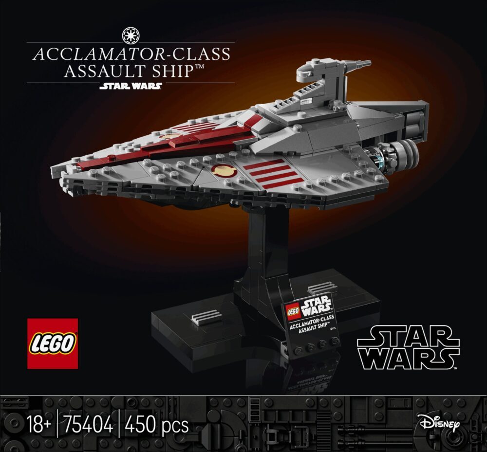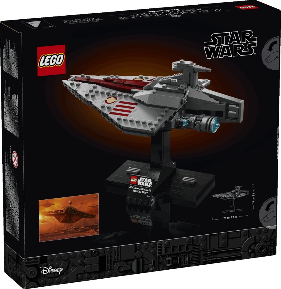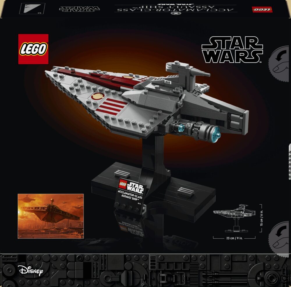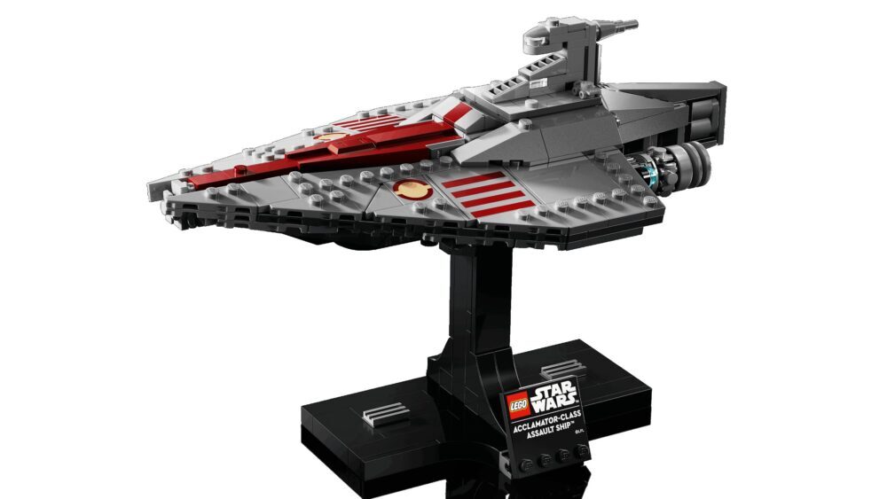 Složite prvi model jurišnog broda klase Acclamator od LEGO® kocaka kao u filmu Ratovi zvijezda: Klonovi napadaju™. Sastavite autentične detalje svemirskog broda koji je prevozio legije klonova u bitku kod Geonosisa. Stavite model na postolje i izložite ga samog ili pored drugih kolekcionarskih modela od kocaka (prodaju se zasebno) iz kolekcije svemirskih brodova LEGO Star Wars™.