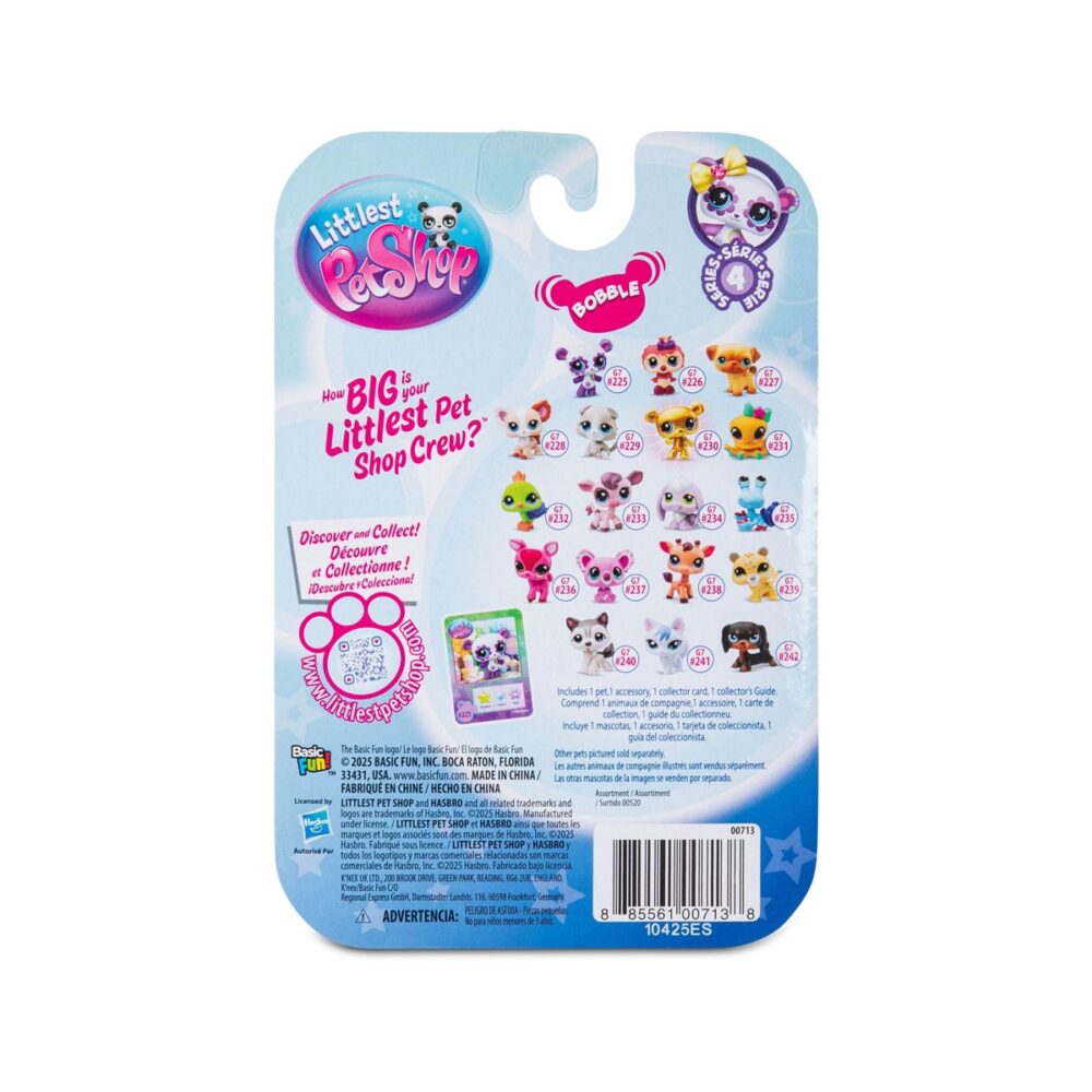 Proširite svoju kolekciju s **18 preslatkih, potpuno novih ljubimaca** iz Serije 4 Littlest Pet Shop! Upoznajte omiljene životinje poput **mopsa, čiuvave, koale i kunića spuštenih ušiju**, a svaka je figurica prepuna jedinstvene osobnosti, slatkoće i šarma.