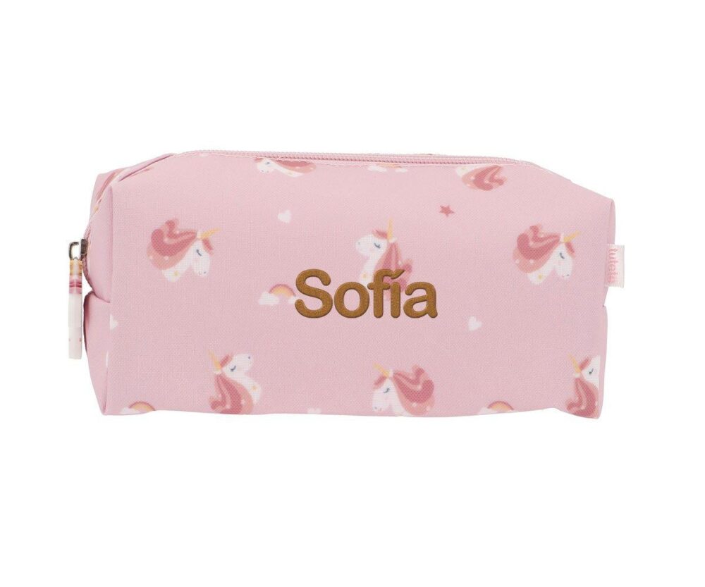 The case decorated with the magical unicorn from the back to school collection Tutete Magical Unicorn will be great for your kids to store their pencils, pens, markers, and much more.It has the ideal size to carry it in the backpack or place it on the table or desk during study or craft time. It closes with a zipper that has a unicorn-shaped pull, making it easier to open and close. Furthermore, you can personalize it with your child’s name. You can see the complete Tutete Magical Unicorn collection by clicking HERE FeaturesCan be personalized with a maximum of 12 charactersThe arrangement of the drawings may vary and the embroidery may coincide, so the personalization may end up on top of one of themMaterial: 100% RPET (recycled plastic)Dimensions: length 19cm x height 10cm x depth 8cmZipper closure with decorative pullMachine washable in cold water (30°C)When choosing the personalization option, some traces of the 100% RPET material (recycled plastic) may remain on the embroidery. Gently scraping with the help of a clothes brush will release these traces