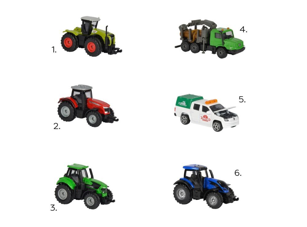 Želiš upoznati poljoprivrednu mehanizaciju? Set šest različitih poljoprivrednih vozila će biti idealan za to. Pomični dijelovi, detalji i poznate marke – sve će te to dodatno zabaviti.