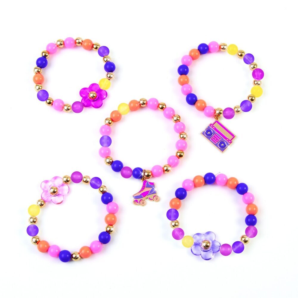 Magija boja na tvom zapešću! S ovim DIY setom možeš izraditi 5 jedinstvenih narukvica koje mijenjaju boju i prilagođavaju se tvojem stilu u svakom trenutku. Boje izblijede kada si unutra, ali se vraćaju u živahne nijanse čim su izložene prirodnoj sunčevoj svjetlosti. Uz razne perlice, cvjetne i metalne privjeske te elastičnu vrpcu, sve što ti treba za kreiranje pravih malih umjetničkih djela već je uključeno!