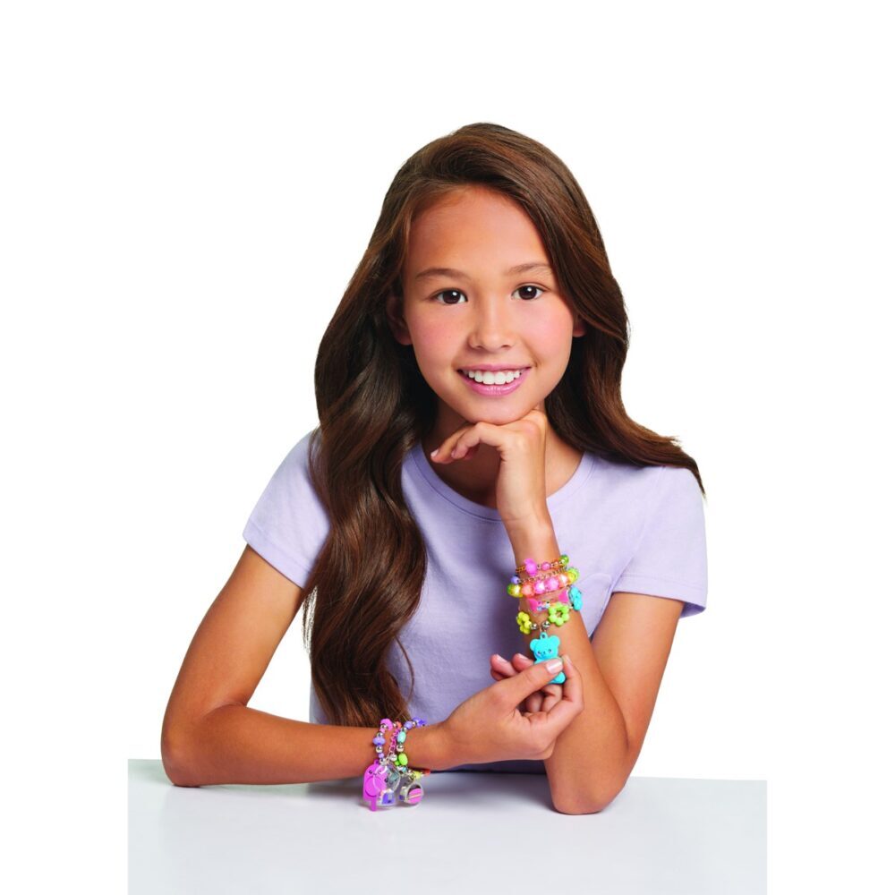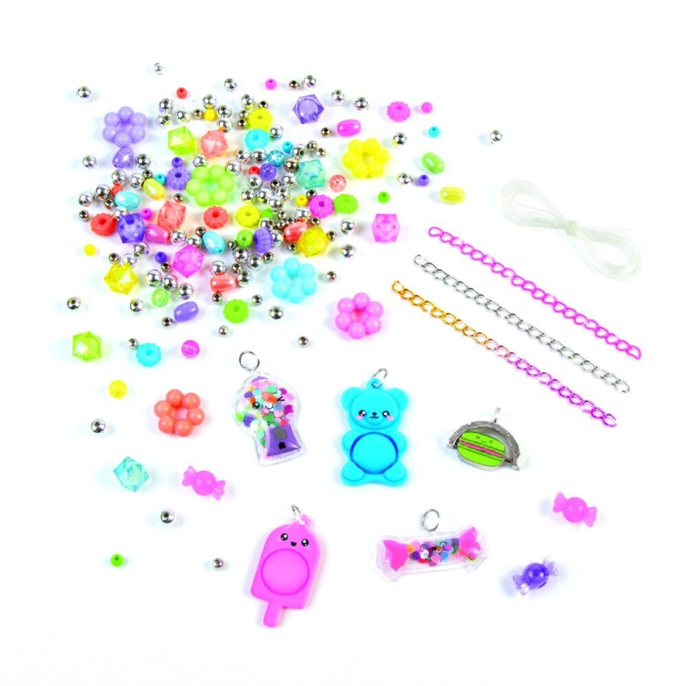 3 lančića za narukvice, 1 prozirnu elastičnu vrpcu (2 m), 160 raznih perlica, 2 shake privjeska, 1 twist privjesak, 2 push & pop privjeska, 1 upute za korištenje, 1 PlayTray