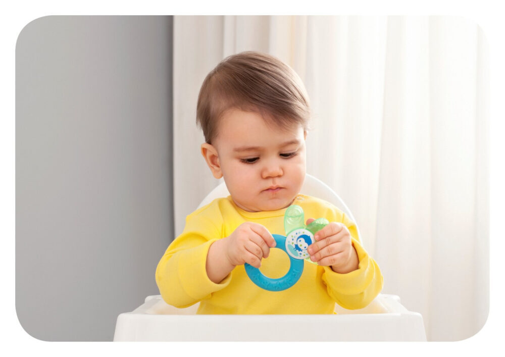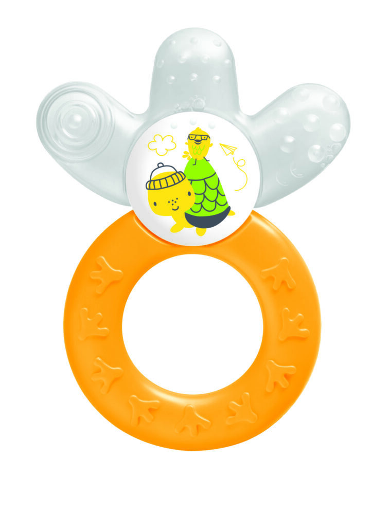 Jedinstveni oblik rashladnog dijela omogućuje mu da dosegne sva mjesta u ustima, uključujući kutnjake . Različite površinske strukture dodatno ublažavaju bol kod zubi, a okrugli oblik omogućuje bebama lagano držanje.
