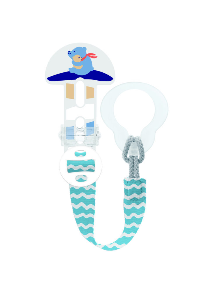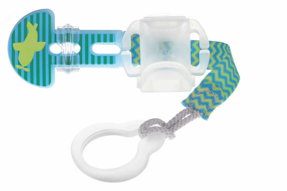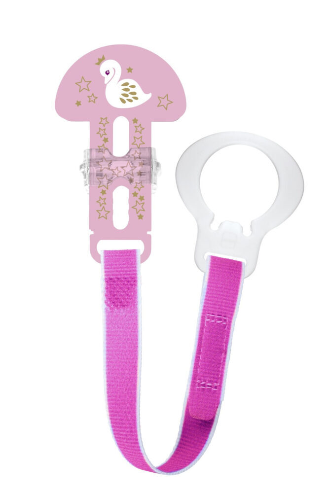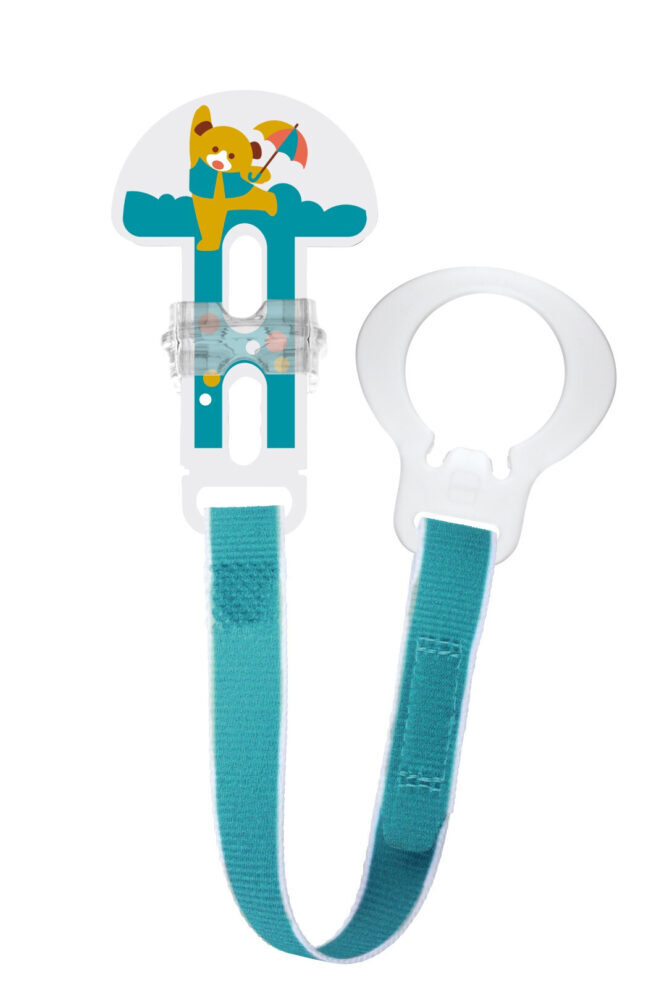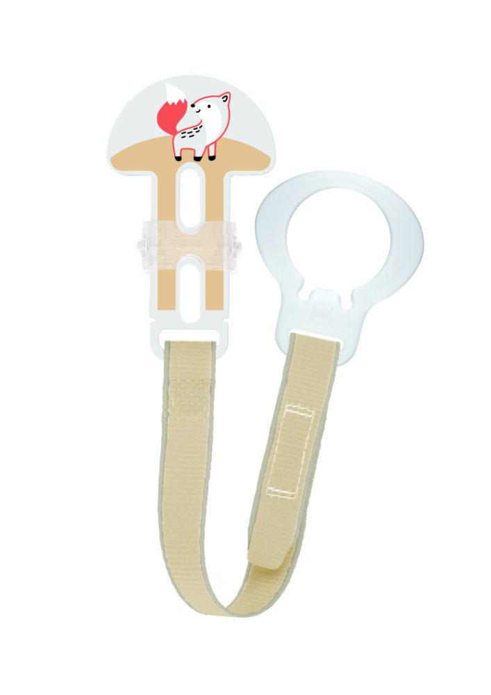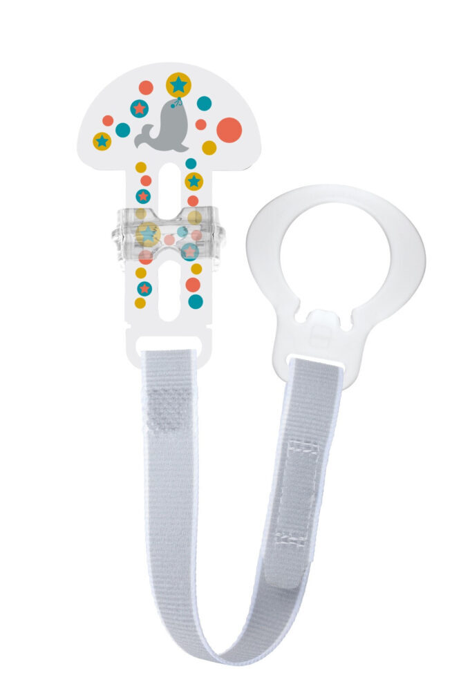 Odgovara svim MAM dudama. Inovativnim podešavanjem duljine uvijek se prilagođava specifičnoj primjeni. Mehanizam za stezanje je jednostavan i može se otvoriti samo jednom rukom, tako da se automatski otvara ako povučete klizač natrag.