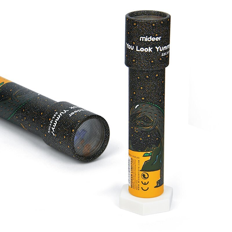 Mideer kaleidoskop pružit će djetetu čaroliju i prekrasne uzorke u vlastitoj sobi! Okrećite vrh cilindra i tako mijenjajte različite uzorke s temom hrane pod nazivom Ti izgledaš ukusno! Kompaktan, lagan, visok 19 cm i promjera 4 cm, kaleidoskop će s lakoćom držati u rukama čak i najmanje dijete te bez problema njime upravljati, stvarajući vlastiti čarobni svijet. Dob: 3+