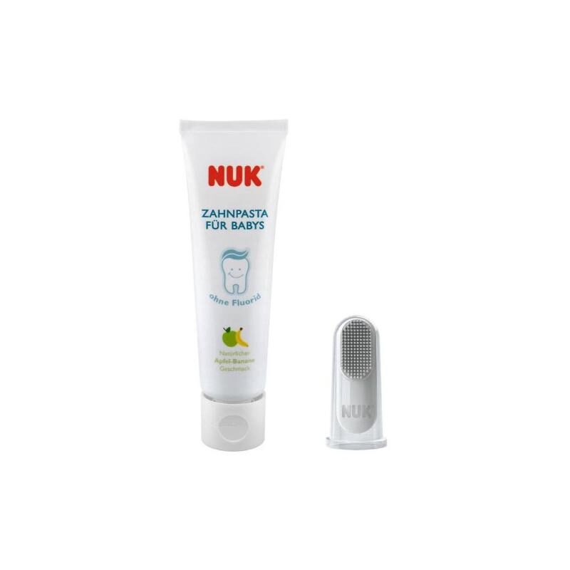- NUK zubna pasta: čisti zube, desni i usnu šupljinu. Ne sadrži fluorid te je sigurna u slučaju gutanja. Sadrži enzime koje sadrži majčino mlijeko.