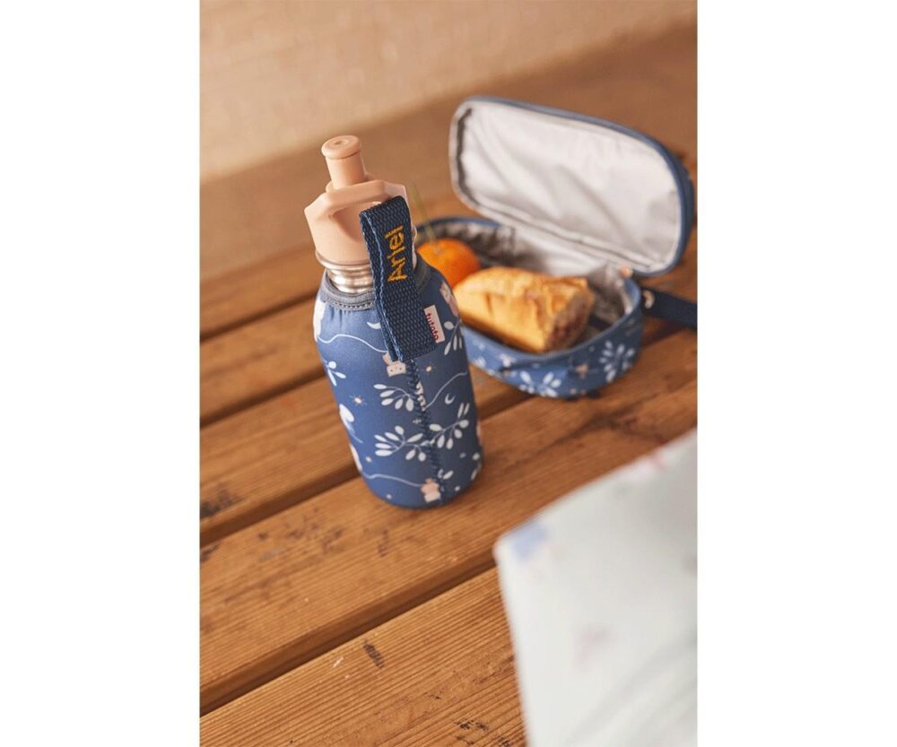 Children’s 350 ml Stainless Steel Bottle with Tutete Magical Forest Back to School Collection Personalized Neoprene Sleeve.The ecological and healthy alternative to plastic bottles!This bottle with neoprene sleeve is perfect to take to school, kindergarten or for a walk. It is designed to keep water fresh longer and avoid the unwanted flavors that plastics can transfer.You can have the sleeve personalized with the name in capital letters on the strap or the steel bottle.FeaturesTHIS BOTTLE IS NOT INSULATED but the neoprene sleeve helps keep the temperature longerComposition: 18/8 stainless steelDimensions: height 14.5cm x diameter 7cmCapacity: 350mlWeight: 109grsRemovable neoprene sleeveVelcro strap to hang to a backpackAirtight screw capHand washNeoprene: Hand wash with cold water and mild soapStore open and emptyNot suitable for microwavesDo not freezeFree of BPA, phthalates, lead or other harmful substances6+ years old (due to the screw cap)