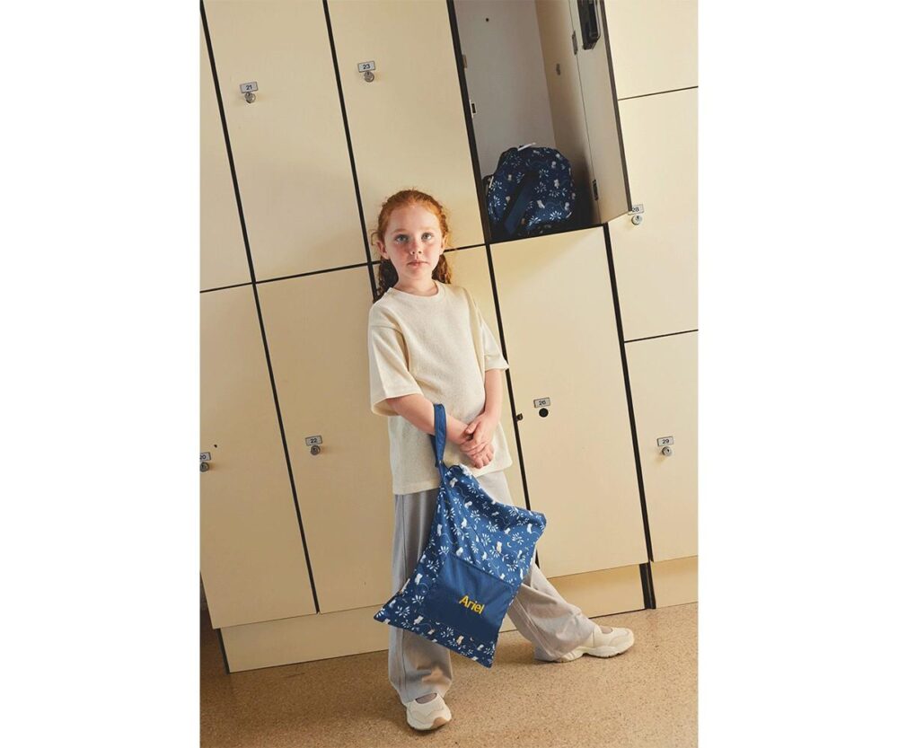 Tutete Funny Letters Back to School Collection personalized Children’s Waterproof Bag.Go back to school with style and functionality! Tutete children’s waterproof bag is the ideal companion for daycare, kindergarten or family trips. Designed to offer versatility, comfort and a unique touch with its customization option, this bag is perfect to carry a change of clothes, store a wet swimsuit or always have your little one’s underwear at hand.It has a large compartment, a zip closure and a handle with a snap button to hang it to a stroller or carry it comfortably. It’s sturdy, lightweight and perfect for everyday use.Why choose our children’s waterproof bag?Waterproof inside: ideal for wet or damp clothesYou can personalize it with your child’s name (up to 12 characters)Perfect for kindergarten, after-school activities or tripsEasy to hang and carry thanks to its handle with push buttonExclusive design from the Funny Letters collection, fun and original!View all the lovely Tutete Funny Letters collection items by clicking HEREFEATURESDimensions: 40 cm (height) x 31.5 cm (width)Outer composition: 100% polyesterInterior: waterproof membraneOpen outer pocketTop zip closureMachine washable (max. 30º)Not suitable for tumble dryers