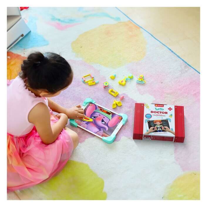 Interaktivni set za igru doktora za uzrast 4-8 | Digitalna igra uloga | Edukativne igračke i darovi za dječake i djevojčice | Radi s iPad uređajima, Samsung i Lenovo tabletima i Amazon Fire (tablet nije uključen)1.)Pretvorite svoj tablet u interaktivnu bolnicu uz Tacto Doctor tvrtke PlayShifu. Medicinski pribor za djecu prvi je interaktivni uređaj na svijetu. Tacto Doctor osmišljen je da podigne igranje uloga na višu razinu.Uz pravilno STEM učenje, to je stvarno atraktivna igračka koja pomaže djeci u učenju o svijetu bolničkog liječenja.2.)Set uključuje dijelove za igru kao što su stetoskop, termometar, rendgen i još mnogo toga. Djeca se mogu brinuti o svojim pacijentima kao liječnici dok nose medicinske haljine u bolničkoj aplikaciji gdje spašavaju živote na temelju priča kroz igru.Razvija socijalno-emocionalnu inteligenciju, poboljšava vještine rješavanja problema i podučava koncepte sigurnost i prva pomoć tijekom cijele igre.3.)Za uzrast od 4 do 8 godina postoje 3 interaktivne igre s preko 100 razina koje potiču kognitivni razvoj.Igre su osmislili roditelji, za roditelje, kako bi potaknuli dječju samostalnu igru, s ciljem da vrijeme provedeno pred ekranom bude edukativno i sadržajnije.Za rad je potrebno preuzimanje besplatne aplikacije Tacto iz App Store ili Google Play Store (nisu potrebne kupnje unutar aplikacije). Nakon jednokratne instalacije aplikacija radi bez internetske veze.4.)Set uključuje okvire za tablet i 12 jedinstvenih figura/predmeta: stetoskop, toplomjer, bočicu s lijekom, rendgen, zavoj, svjetiljku, povećalo, škare, sprej, štrcaljku, pumpu za krvni tlak i ultrazvuk.Pričvrstite okvire na rub tableta tako da samo on ostane na mjestu i njime “zakoračite” u svijet bolnice, gdje upoznajete simpatične likove – Dr. Dough, Mishka i Dr. Leah.5.)KOMPATIBILNOST UREĐAJA: