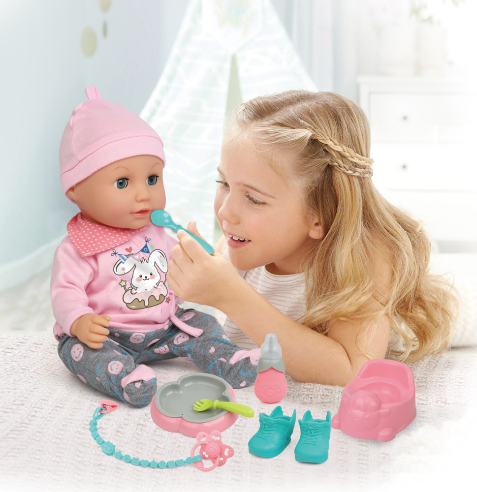Slatka lutka s zvučnim efektima može piti i piškiti. Kako zabavno!